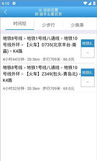 2、智能导航:输入您的目的地,系统将自动推荐最佳的公交/地铁换乘方案。它还支持步行连接引导。