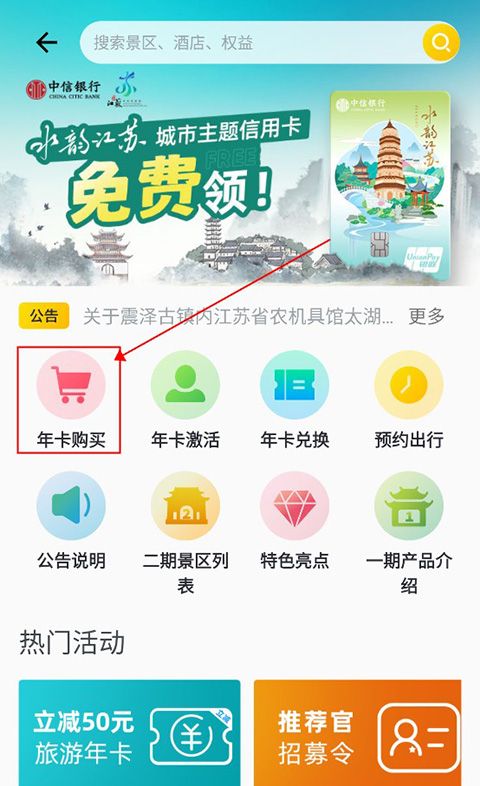 进入页面之后,点击上方的“年卡购买”,进入数字旅游卡的购买页面。