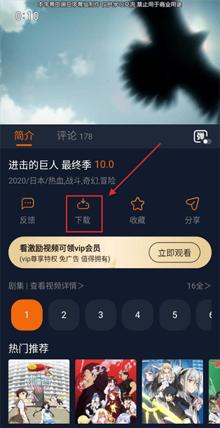 1、进入软件首页选择视频播放,在播放页点击【下载】。