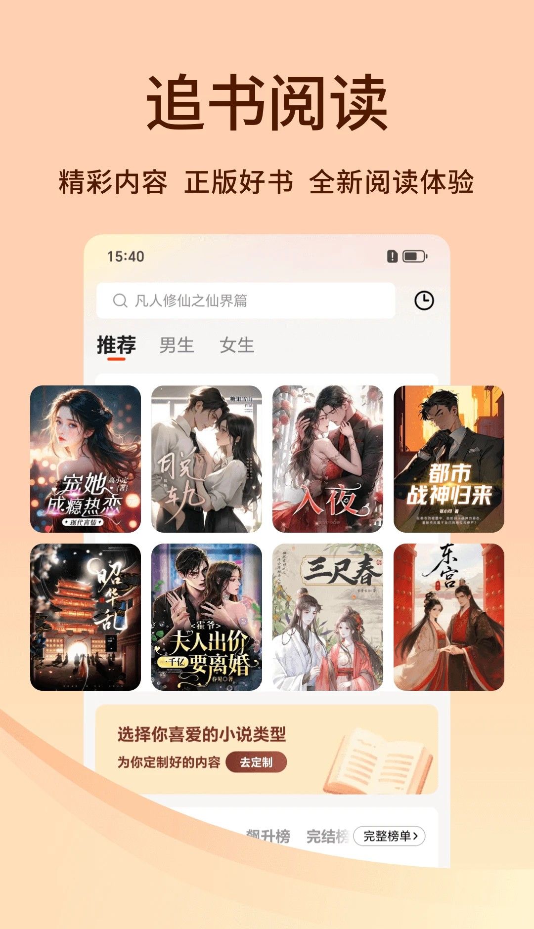 追书阅读免费版是一款全新的免费阅读看书软件,拥有丰富的小说书籍资源可以及时获取,随时随地在线阅读喜欢的小说,还整合了全面小说书城和书单,允许用户自由关注各种热门小说书籍的更新,免费阅读感兴趣的小说书籍和最新内容,能完全满足所有阅读需求,还拥有智能搜索方式,可以输入小说名称来搜索查找各种精品小说,自由享受优质的追书阅读之旅,还能直接查看小说榜单,自由阅读热门小说作品。