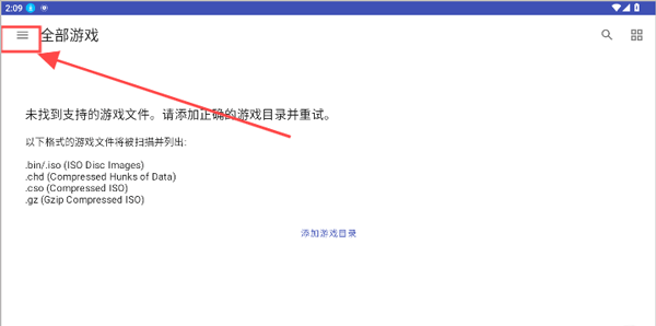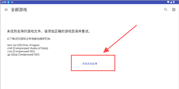 点击主界面的“添加游戏目录”,将自己要玩的游戏rom添加进来,之后就会在列表出现游戏了。