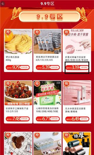 1、打开软件,进入首页,点击9.9元惊喜抢购