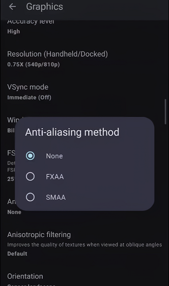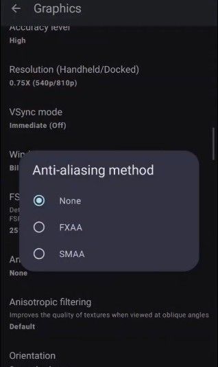 4、抗锯齿设置为None,各向异性过滤设置为 default 或 auto。