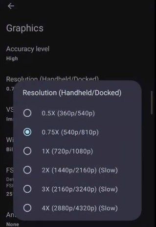 3、分辨率始终设置为较低的0.75倍以获得更高的性能。如果您是低端手机,0.5倍更好。