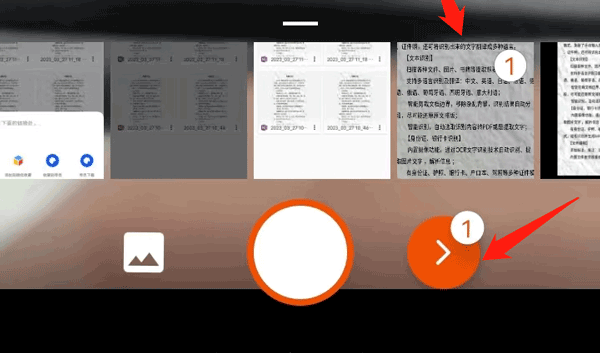 1、在这个页面下载安装完软件后,点击进入该应用,选择底下的文档选项,点击拍摄你要转成PDF的文件,或者在图片中直接选择拍摄好的文档,可以多选,再点击快门键的右侧图标,