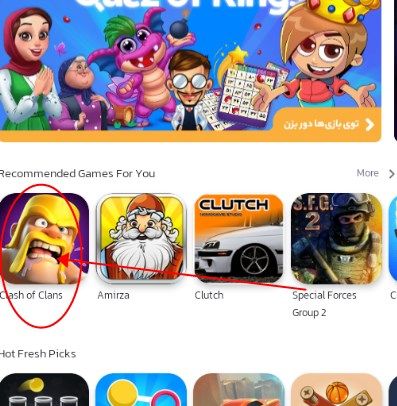 1、点击我们需要下载的软件,例如部落冲突国际。