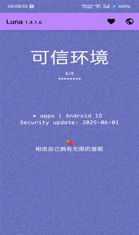 Luna环境检测工具是一款专门针对安卓设备打造而成的系统检测工具,主要能够提供硬件信息诊断、系统安全评估与反欺诈检测等方面的服务。这款软件不仅采用了超小的体积而且更是加入了傻瓜式的操作步骤。相关用户在这里只需动动手指便可以进行一系列检测分析操作,能够很好的满足了相关用户的使用需求。软件还能够对一系列应用中的root检测进程完全冻结掉,从而可以快速通过检测。