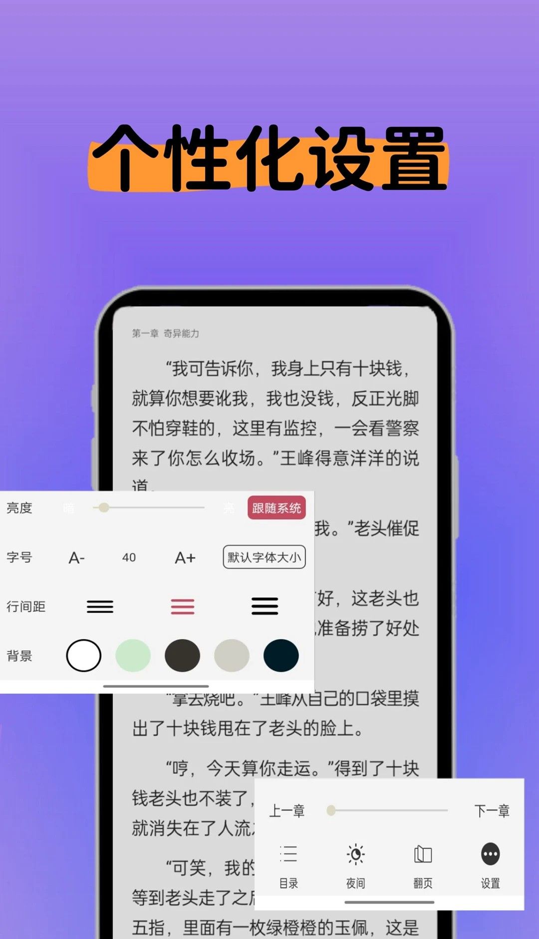 2、个性化设置:支持自定义阅读界面,提升阅读体验。