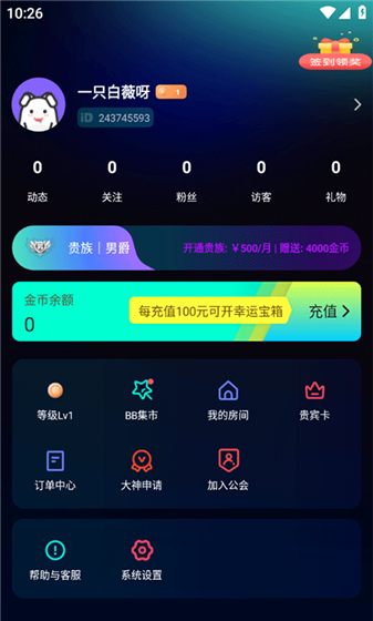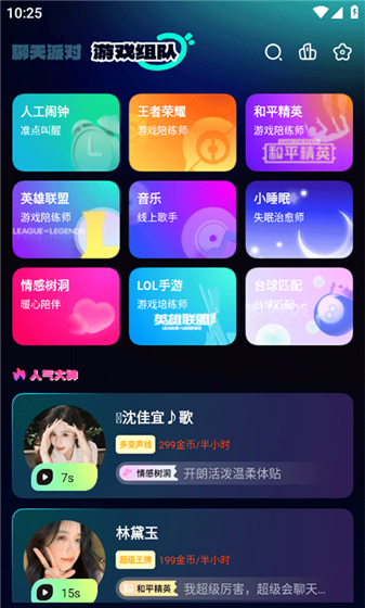 1、打开APP,进入首页后有两个大模块,分别是聊天派对与游戏组队。