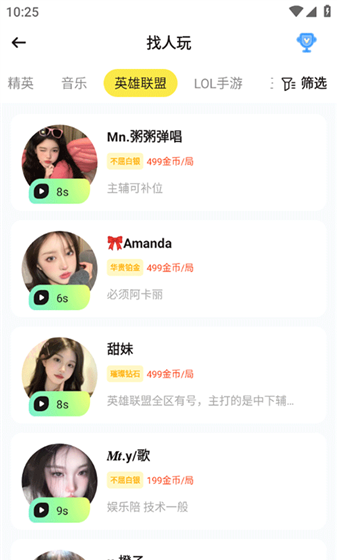 3、在下方滑动挑选你想要连麦的陪玩。