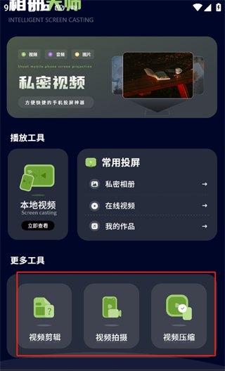 4、软件内还有视频剪辑、视频拍摄、视频压缩、等功能。