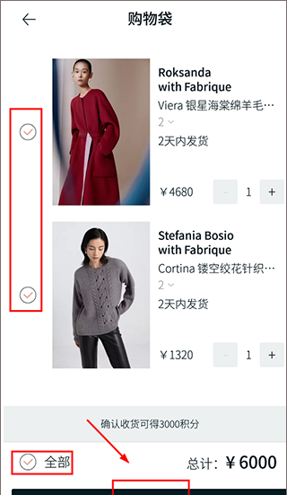 3、商品选择完成后,点击进入【购物袋】页面,选中需要购买的商品,点击【去结算】。