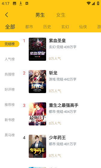 2、平台还设有多类精选书单和实时榜单,便于读者快速发现心仪作品。