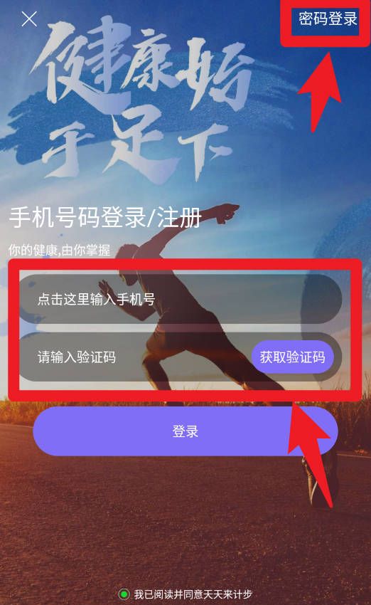 2、在登录界面输入手机号并获取验证码,也可以选择密码登录,完成验证后即可直接进入。