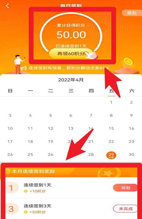 4、在每日签到模块,坚持签到可累计积分,每日签到一次即可获得奖励,连续签到还可解锁更多积分福利。