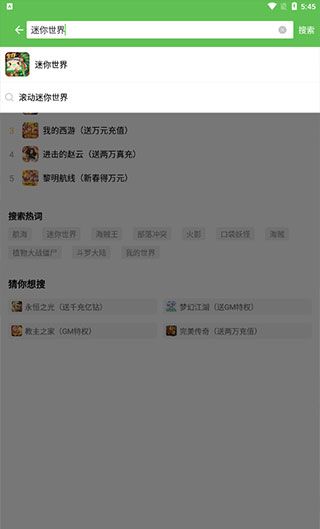 2、点击首页上方搜索框架,输入关键字一键进行即可自己想要的游戏资源,同时也能查找游戏的礼包福利。