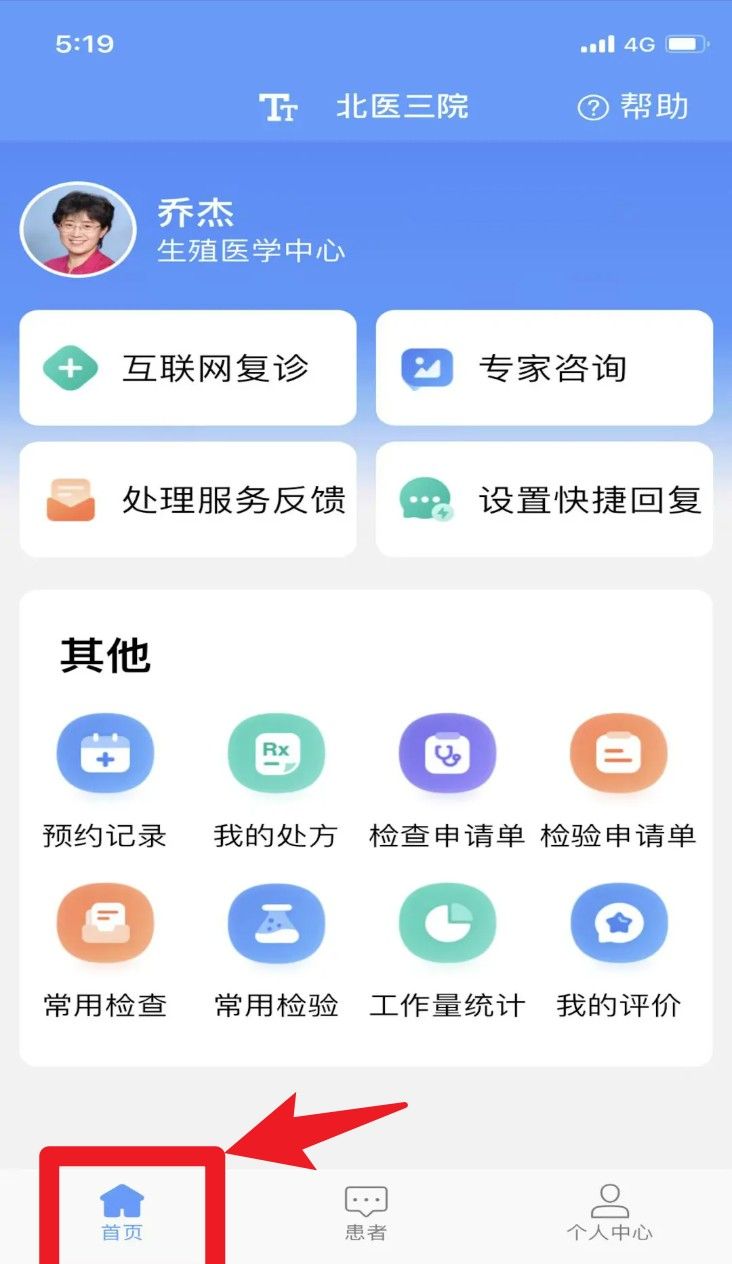 2、登录成功后,系统默认将您引导至“首页”页面,您可以快速进入医生的后续会诊、专家会诊、处理反馈等工作入口。
