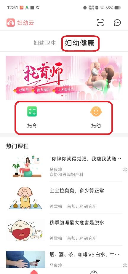 1、首页,母婴保健学习,许多母婴技术和专题培训。