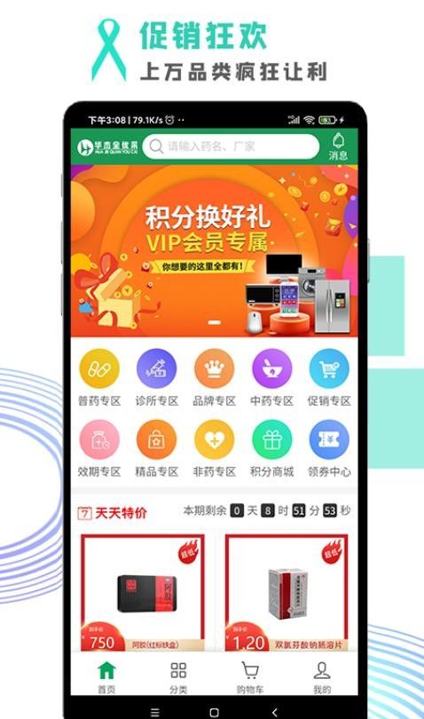 2、分类界面设计清晰,提供大量高质量的分类资源。用户可以实时查看各类药品,方便快捷地找到自己需要的产品。