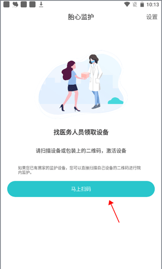 2、首先,请医务人员收集设备。拿到设备后,扫描设备上的二维码,点击“立即扫描”即可。