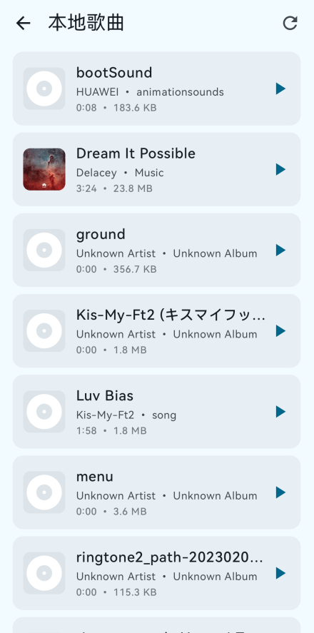3、扫描的过程会有一点长,需要耐心等待一会。扫描完毕后不但会显示音乐文件,录音文件也会被识别到。