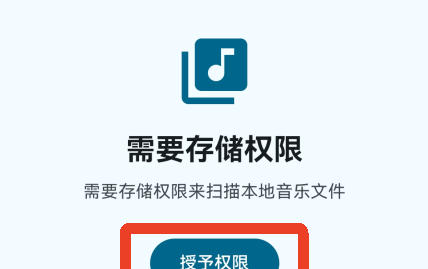 2、点击【授予权限】,需要授权才能扫描手机内的本地音乐文件。