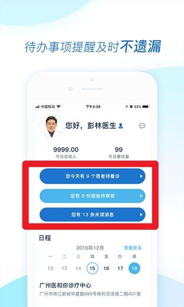 4、主页待办事项提醒功能突出显示待处理的任务,包括待处理的约会、待处理的评论和未读消息,以避免错过重要任务。