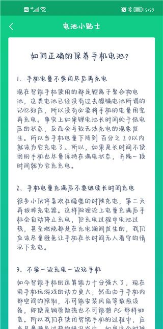 4、该软件还为用户提供电池提示,让他们学习如何正确维护手机。