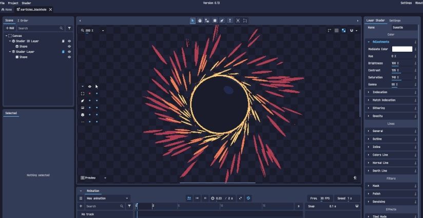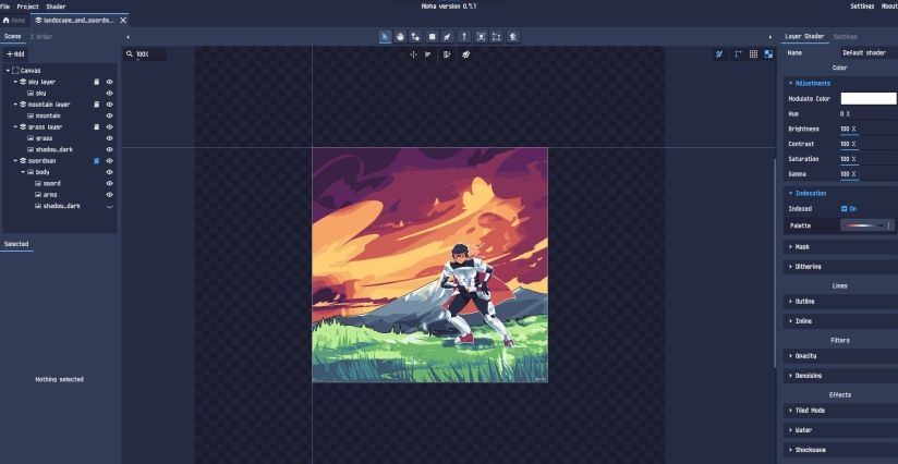2、基于图层的工作流程,具备像素艺术效果:索引化、抖动、像素级线条、颜色循环等。