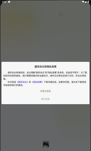 1、阅读服务协议和隐私政策后点击同意并接受。