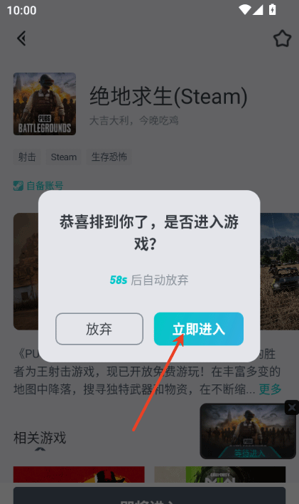 4、需要注意的是,用户需要在60s内响应进入游戏,否则就得重新排队。