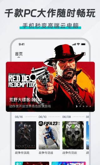 2、首页为玩家推荐了当前热门的云游戏。