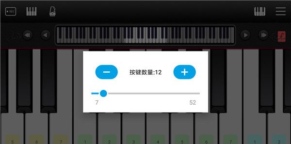 3、自定义键盘宽度:用户可以通过点击键盘左右两侧的+-符号随时调整钢琴块的宽度,以适应不同的手指大小和习惯。