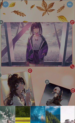 4、多次添加照片后,根据需要调整每张图片的大小和角度,也可以自由更改背景。