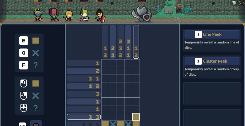 这是一款将数织(Picross)谜题与自动战斗机制相结合的游戏。
