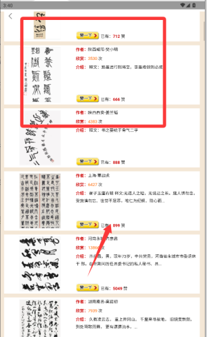 4、社区互动:有一个书法社区,用户可以在那里分享他们的书法作品,交流学习经验,共同进步。