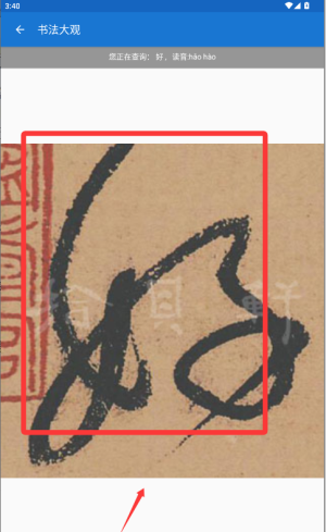 2、使用临摹功能选择经典书法进行红笔练习。手机屏幕将模拟纸张书写的感觉,系统将为笔划顺序和结构问题提供实时提示。