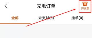 2、然后选择收费订单界面右上角的“发票”功能,并选择为上一个订单开具发票。
