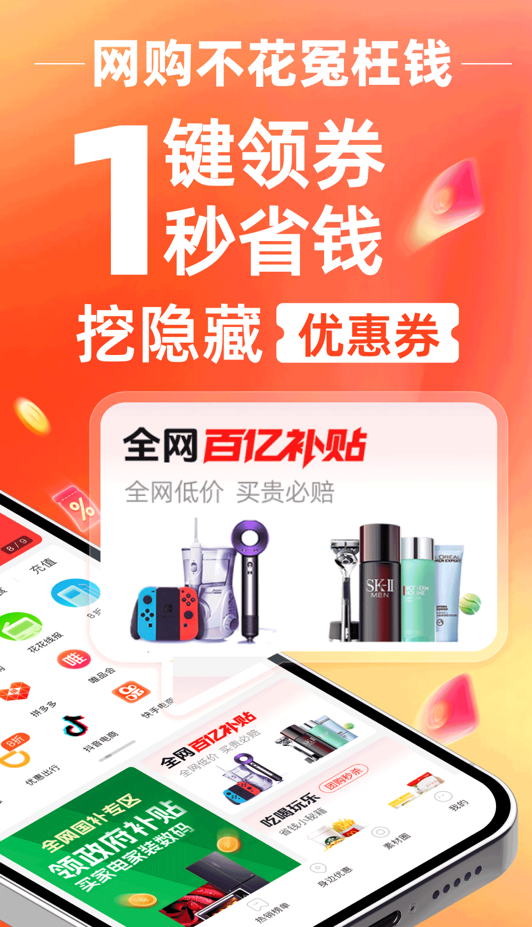 1、一键领取:软件独具一键领取功能,可全网搜寻隐藏优惠券,实时精准领取,让购物省钱轻松又便捷。