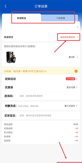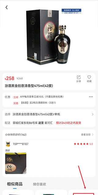 2、查看产品详情:进入产品详情页面,查看价格、配送方式、库存等信息,选择配送地址和购买数量。