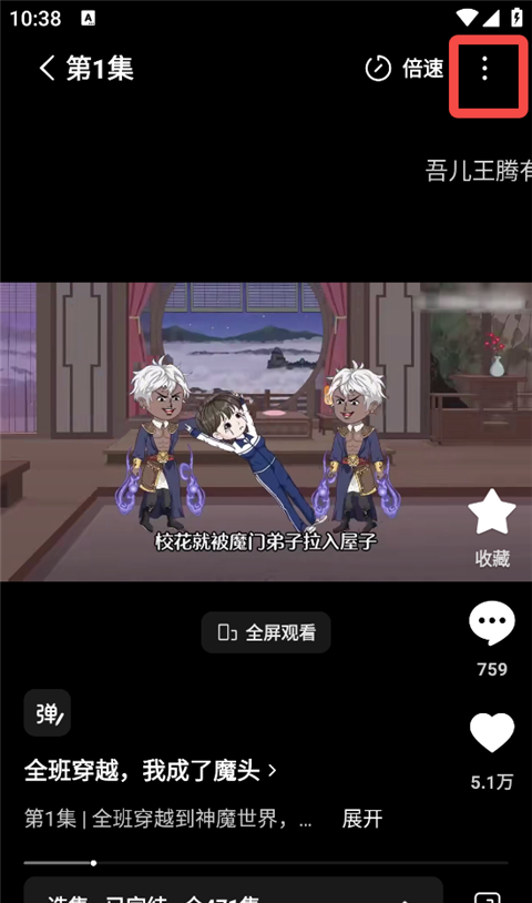 1、打开红果免费漫剧app,进入剧集播放界面,点击右上角三点标识。