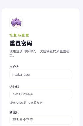 4、提交信息后,保存好系统生成的 10 位恢复码(用于后续找回密码)。