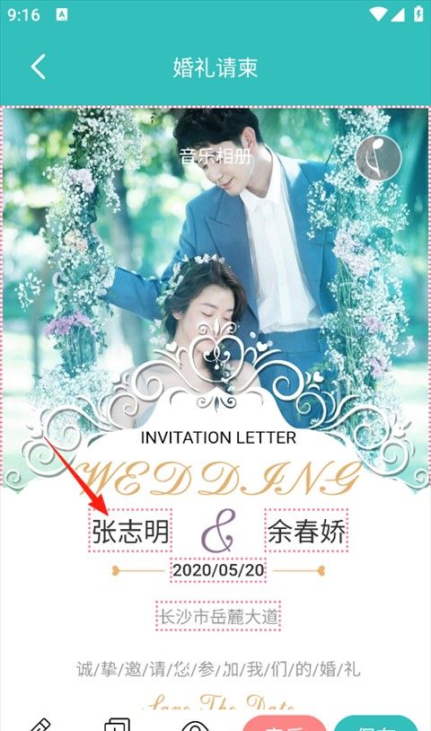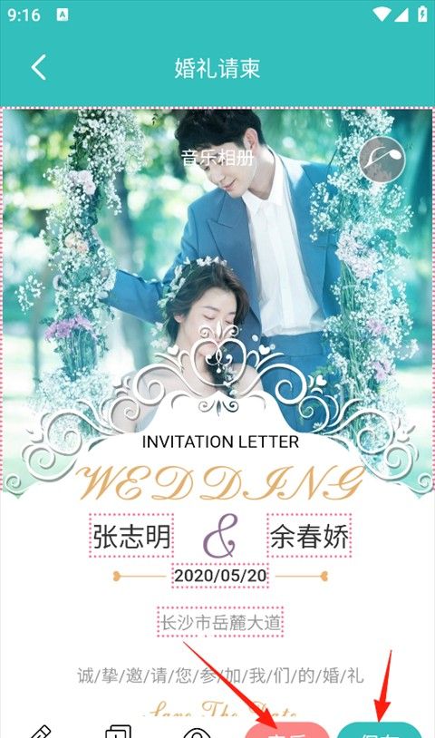 6、点击左下角的“音乐”,选择您最喜欢的音乐,然后点击“保存”进行保存。