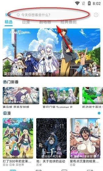 1、在软件“首页”选择,或者点击最上面的搜索框搜索要看的动漫。