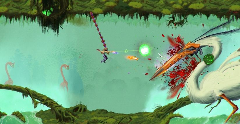 《链枪(ChainStaff)》是由Mommy's Best Games开发并发行的一款充满暴力美学的动作平台游戏,支持简体中文。玩家将利用千变万化的长矛和抓钩,享受火力全开的武器升级,伴随着动感十足的摇滚音乐大杀四方。地球已经被外星人全面占领!施展凌厉的荡跃、精准的射击和致命的投矛,在成群结队的变异怪物中杀出一条血路,直面令人毛骨悚然的大Boss。下面就为大家带来《链枪》免安装中文版下载资源。