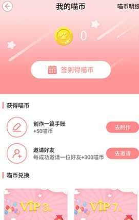 2、通过签到完成任务,您可以赚取喵金币。赚取足够的喵金币可以兑换VIP,并解锁更多VIP专属功能。