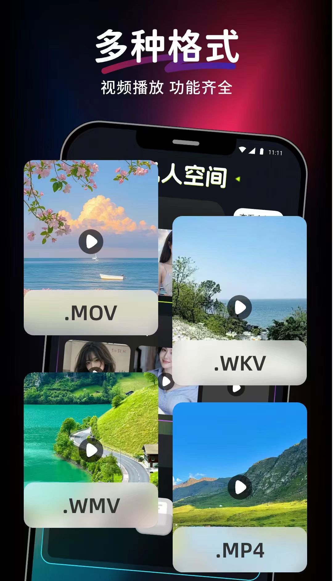 支持.MP4、.WMV、.MOV、.WKV 等多种主流视频格式,快速识别并播放设备本地存储的各类视频文件,高清流畅不卡顿,细节清晰呈现。