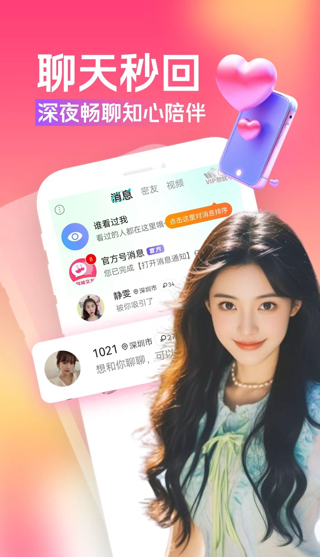 8、即时聊天功能支持深夜聊天和亲密陪伴,随时响应社交需求。