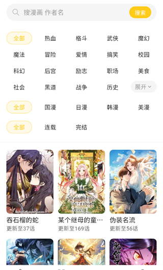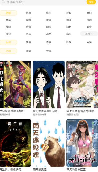 4、改进后的分类方案涵盖了热情、校园、冒险、奇幻、浪漫等主题。它支持关键词搜索和过滤,使漫画的查找更加快速。