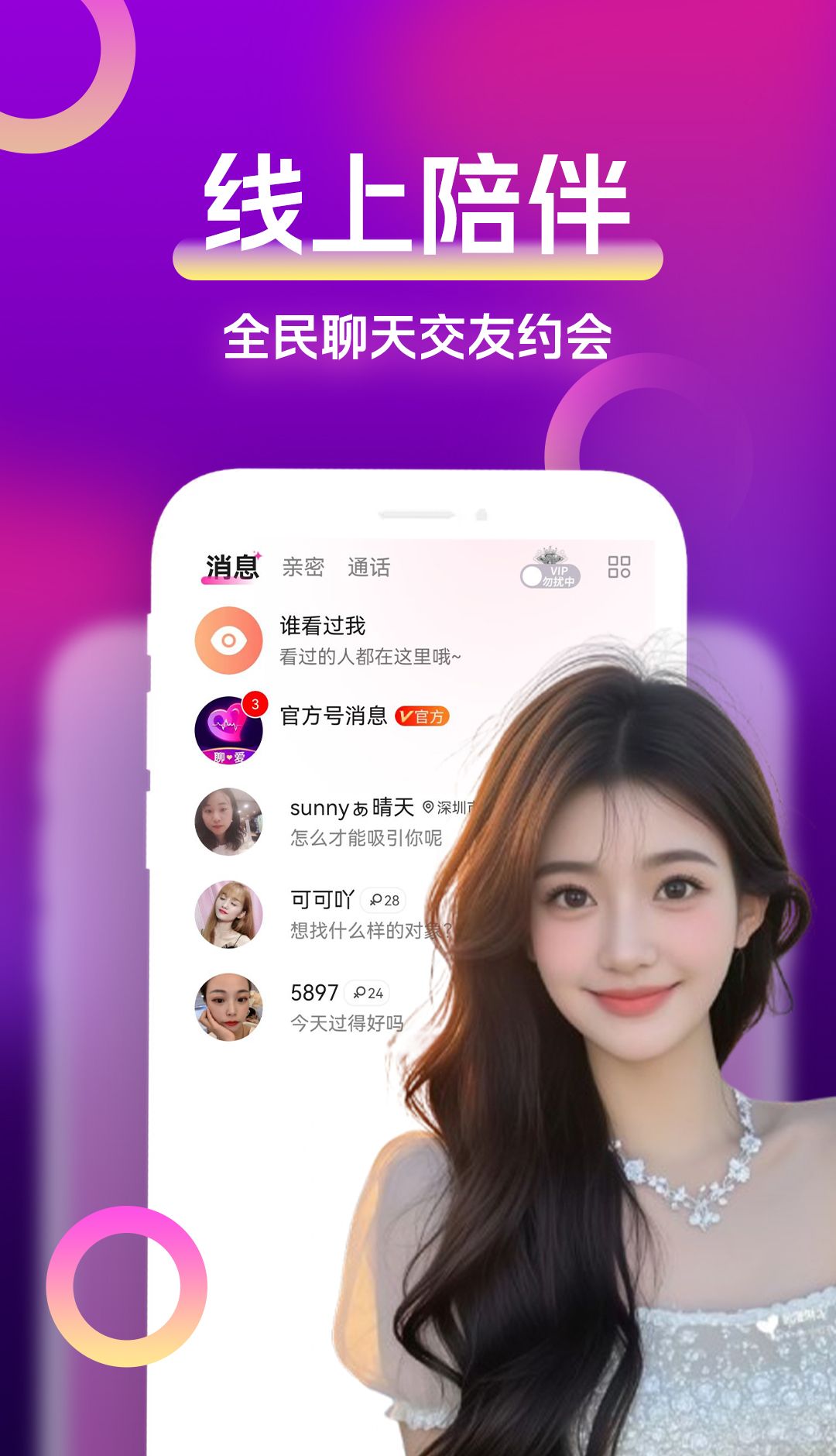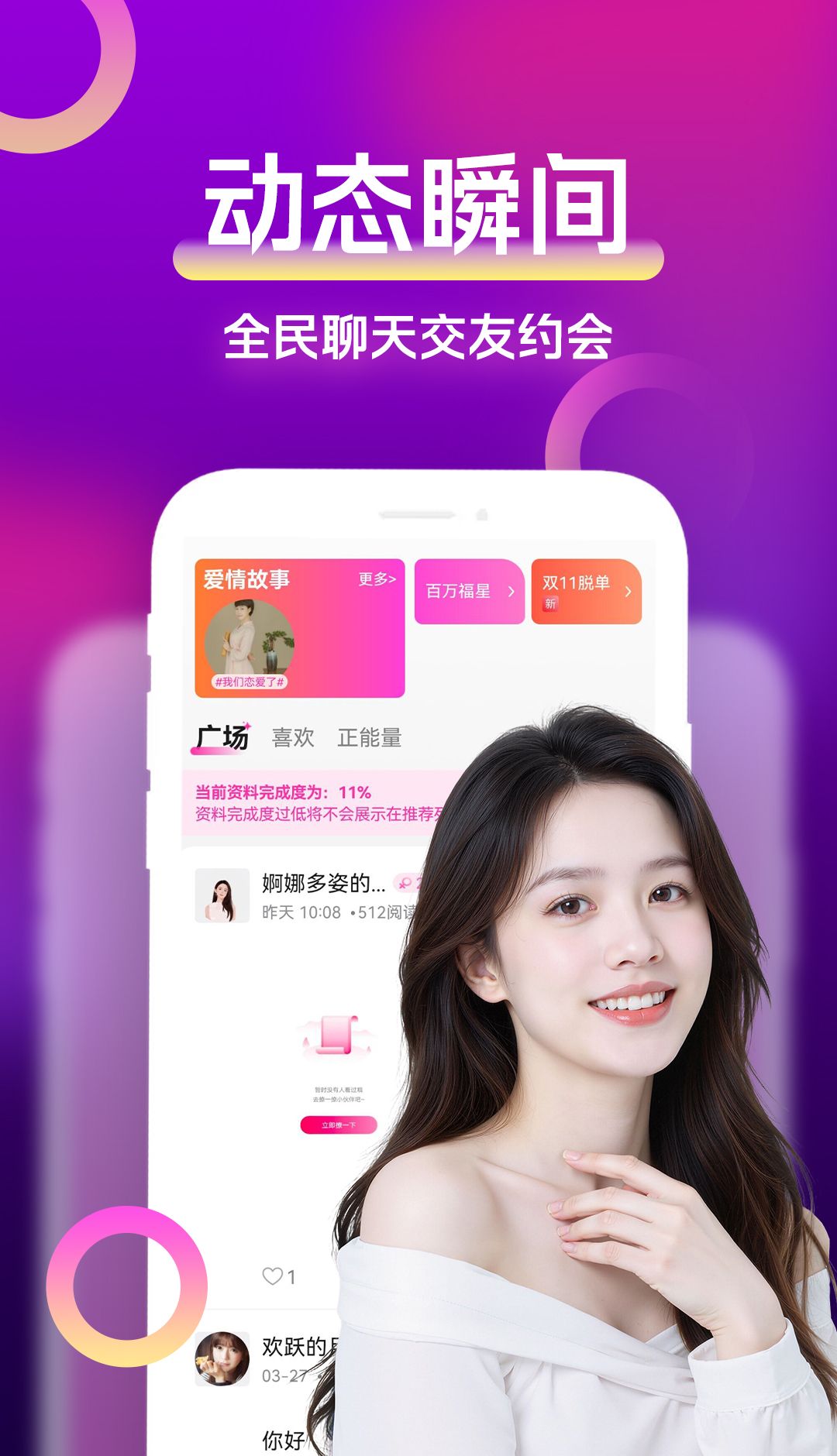 全民聊聊爱以同城为底色,以真诚为核心,以邂逅真爱为目标。为每一位渴望脱单的用户提供无套路、高适配的交友选择,让缘分不再错过。让每一次心动都有回应,每一次奔赴都有意义,让同城相遇更有温度。